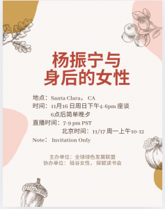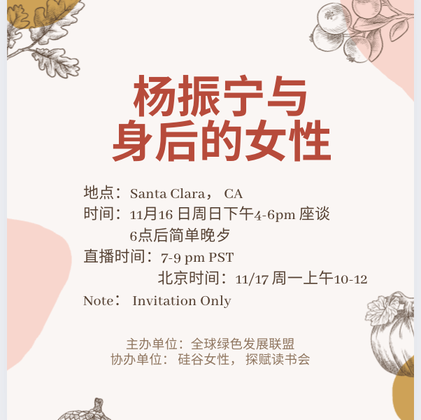 杨振宁先生千古,我们组织一个小型活动,题目是《杨振宁与身后的女性》。