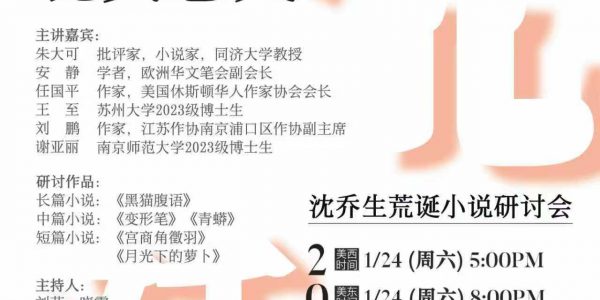 周六(1/24 号)美西时间5pm – 7pm, 美东时间8pm -10pm, 北京时间1/25 9am, 邀请文友上线参加沈乔生老师荒诞小说研讨会——荒诞小说的现实意义。 多位文学评论家和学者会上线交流,细情见贴。欢迎您参与这场文学对话。周末快乐![Rose][Rose][Rose]